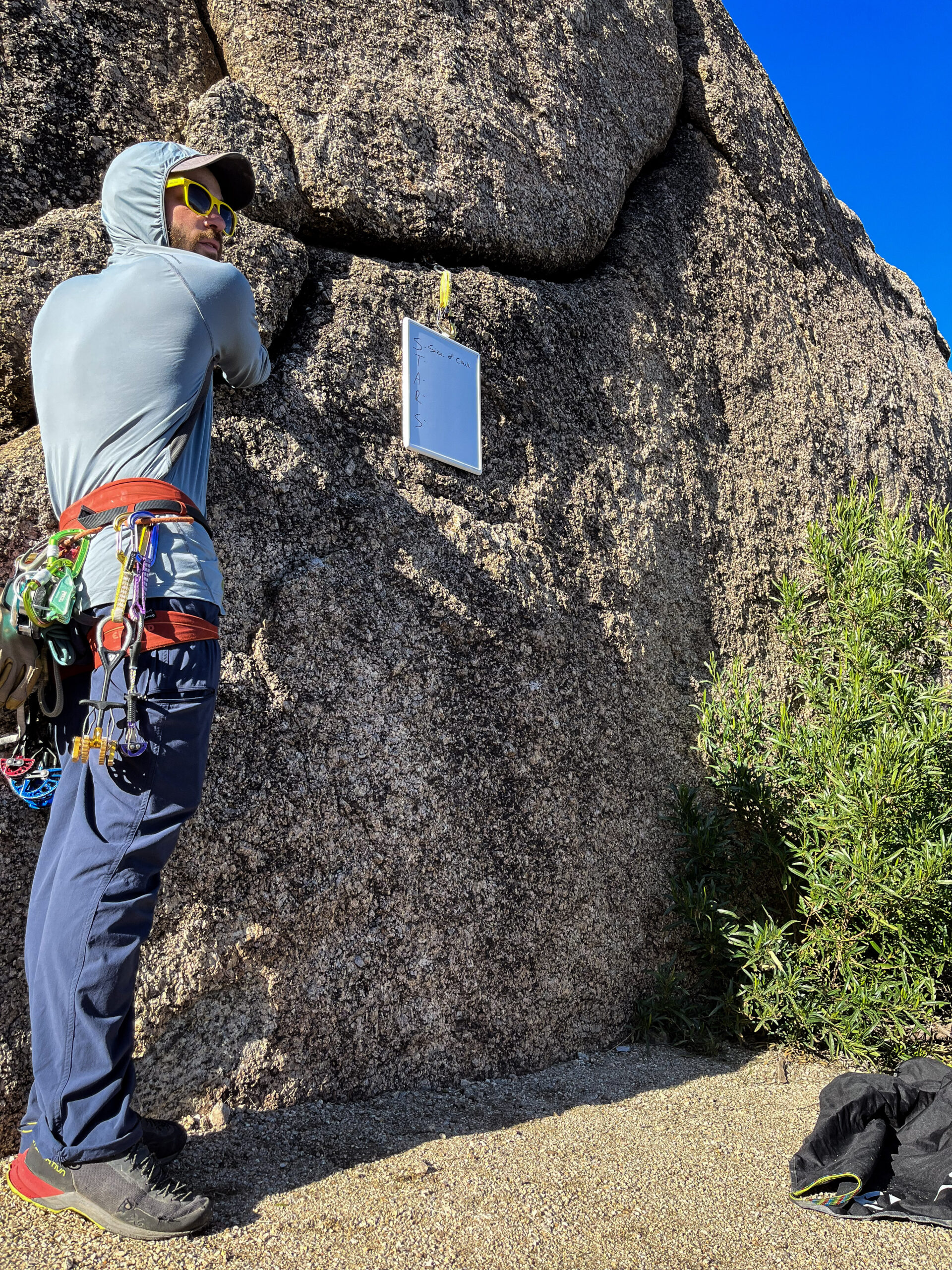 - All rock climbing gear (harness, helmet, rock shoes, etc.)