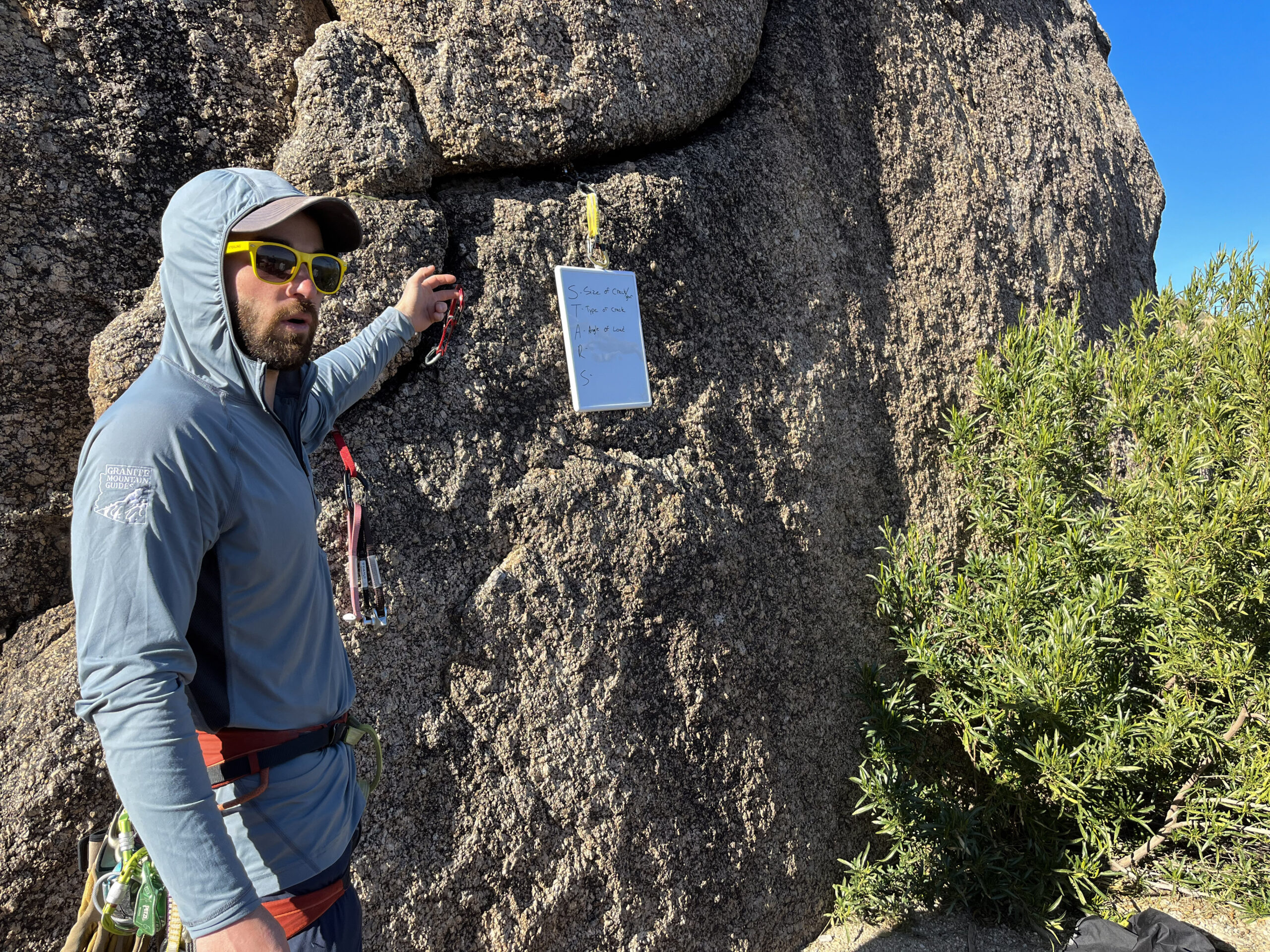 This course does NOT include instruction on how to lead climb. If you wish to learn the skills of placing traditional gear for anchors, please look at our Advanced Anchors Course.